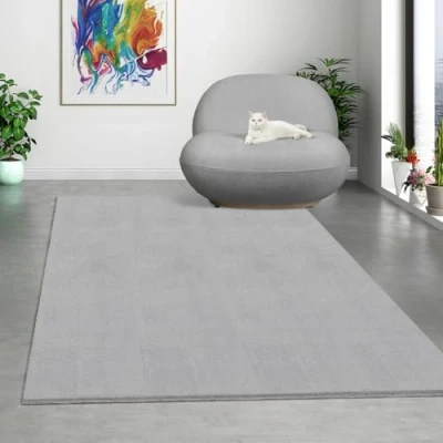 Mias Teppiche Comfort Modern Fluffy Short Pile Carpet, Anti Slip Backing, Washable up to 30 Degrees, Super Soft, Faux Fur Look, Grey, 160 x 220 cm