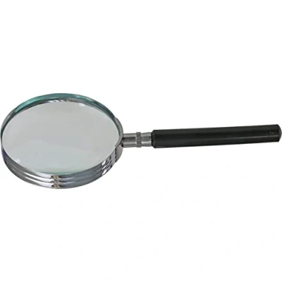Reading magnifier magnification 5x lenses diameter 75 mm Silicate glass optically polished, 3 dioptres, with handle