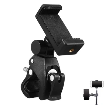 Secure Clamp Design – Strong phone holder clamp keeps your smartphone firmly in place on mic stands and compatible poles 360° Rotation Adjustment – Freely adjustable angle supports portrait and landscape viewing for flexible use Multi-Scene Use – Ideal for live broadcast, recording, riding, traveling, and content creation Easy Installation – Simple clamp-on design allows quick setup and removal without hassle Compact & Versatile – Lightweight black phone holder fits easily into home, studio, or travel setups