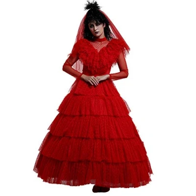 Package Includs: Dress, veil Materials: Satin and mesh fabrics The waist is adjustable from the back design. The oversized hem is full of layers. Design:Women's Costume Cosplay gothic Wedding Dress Perfect for cosplay shows, comic cons, Halloween, theme parties, stage performances and more., Manufacturer: miccostumes