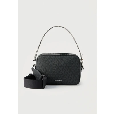 Michael Kors Bryant Medium Double Zip Chain Camera Crossbody Bag, Silver tone Hardware/Tonal Signature Coated Twill/Black, One Size