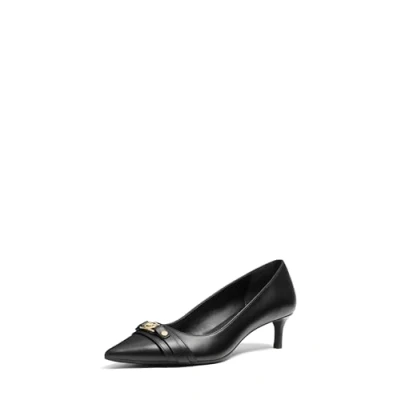 The definition of polished practicality. Our Mandy pump features a timeless, point-toe design with a flexible insole and kitten heel for wear-all-day appeal. Wrapped in leather for a luxe touch, it’s topped with a strap detail and gleaming logo charm About the Brand: Michael Kors is a world-renowned, award-winning designer of luxury accessories and ready-to-wear. Since 1981, his namesake company has defined modern glamour