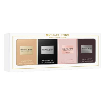 ''Indulge in a collection of iconic Michael Kors fragrances for men and women, with the MK Miniatures Gift Set, which offers a range of perfume minis.'' Chelsey, Escentual Beauty Team.. Why You'll Love the MK Miniatures:. Includes best-selling Michael Kors perfumes.. Fail-safe gift for anyone who loves wearing fragrance.. You get a selection of different fragrances to try before you buy.. The Gift Set Includes:. Michael Kors Pour Femme Eau de Parfum 5ml. Michael Kors Pour Homme Eau de Parfum 5ml. Michael Kors Pour Femme Absolu Eau de Parfum 5ml. Michael Kors Pour Homme Absolu Eau de Parfum 5ml. What You Need To Know:. Perfect for women who are fans of Michael Kors, the gift set invites you to indulge in four stunning fragrances.. Depending on your mood, the event you're attending or even the time of day, you can choose the perfect scent for you; you may opt for a warm, seductive fragrance one day with Gorgeous, caress the skin with the floral-oriental Wonderlust aroma, or enjoy the sensual tone of Sparkling Blush.. Why it's Escentual:. What's better than one luxury designer perfume? Four! Whether you're a fan of Michael Kors who wants a few minis to pop into your handbag or travel bag, you want to test out a few more perfumes that you haven't yet had a chance to try, or you're yet to experience Michael Kors altogether, this set it perfect for everyone.. Scent Details:. Pour Femme - The journey begins with fresh notes of mandarin, pink peppercorn and black currant. This opening, juicy and tantalizing, awakens the senses and energizes body and soul. The heart of the fragrance is luxe and feminine, a refined bouquet of delicate jasmine and robust rose blossoms made modern by the harmonious balance of sparkling fruit top notes and an earthy wood base. Over time, the deep and lasting sensuality of the fragrance reveals itself thanks to the sillage of base notes including creamy vanilla, seductive musk and woody patchouli leaves. Bold and unforgettable, this floral woody musk fragrance has an elegant finish that lingers on the skin.. Pour Homme - An Ambery, Fruity, Floral fragrance opening with the bright zest of Italian mandarin, juicy pear, and a hint of pink pepper. At its heart, radiant Damask rose, amplified by Rosyfolia, blooms over grounding vetiver. The base lingers with sensual Madagascan vanilla, addictive tonka bean, and warm benzoin for lasting depth. It’s more than a fragrance - it’s a statement of style and confidence. The dramatic, distinctive bottle is inspired by a chain that is a powerful fashion symbol, evoking both uptown polish and downtown edge, opulence and refinement, connection and individuality.. Pour Femme Absolu - Nuanced and deep, it intertwines the themes of earth and sea to create an effect that is fresh, aromatic and unexpected. Top notes of bergamot, pink peppercorn and lavandin create a vibrant and provocative opening. The heart of the fragrance is clean and masculine, led by notes of a sea wave accord, clary sage and geranium. The foundation is warm and velvety, with base notes of patchouli, vetiver and grey amber. Powerful and long-lasting, this woody spicy citrus fragrance captures a modern masculine energy.. Pour Homme Absolu - An Aromatic Woody Citrus fragrance opening with energising, fresh zesty lemon, cardamom, pink pepper, and peppermint. In the heart, lavandin, rosyfolia, mahonial, and incense bring depth and an earthy twist. The base reveals a warm, woody blend of vetiver and Akigalawood, leaving a lasting, masculine trail. The dramatic, distinctive bottle is inspired by a chain that is a powerful fashion symbol, evoking both uptown polish and downtown edge, opulence and refinement, connection and individuality.