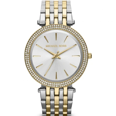 Shop Women�s Fashion Michael Kors Watch, MK3215 Only �190 EAN 4053858010642 in stunning two tone gold-plated design with glittering stone set bezel. Comes in an elegant silver colour dial with gold baton hour markers and slender gold hands.