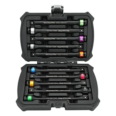 【TOUGH CONSTRUCTION】MichaelPro’s Torque Limiters are constructed from tough impact grade Chrome Molybdenum Steel (CR-MO) for heavy duty use with impact drivers. They are coated with Manganese Phosphate for enhanced strength and resistance to rust and corrosion. Thus, extra durable and extended lifespan. 【WHAT’S INSIDE】This set includes ten 1/2-inch drive impact torque limiting extension bars ranging from 65 foot-pounds to 150 foot-pounds (95 - 200 Nm) of torque. 【SAVES LUG NUTS】 1/2” Drive size is compatible with impact drivers to limit torque consistently and accurately to prevent lug nuts and fasteners from over-torqueing. These torque limiters loosen bolts and nuts quickly even at awkward angles and in hard to reach areas. They prevent over-tightening which can cause premature failure of wheels, wheel studs, and rotors. 【PICK AND GO】Each torque limiting bar is color-coded with visible torque limit specifications for easy identification and retrieving. These torque limiters come with a blow-molded case for convenient storage and transport. 【RELIABLE & TRUSTABLE】Engineered and tested in Taiwan, where its being widely recognized for its dedication in producing premium quality tools, this tool is definitely one of the essentials in your garage, workshops or home. Our customers trust our tools to be of quality ones. If you experience any issues, simply contact us for assistance or give us your feedback!