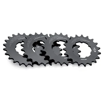 Splined track sprocket with threaded sprocket carrier Thermally treated steel and opaque chromed Compatibility: 1/8" Weight: 17 grams (19t)