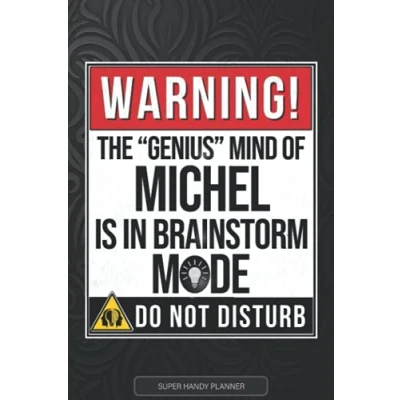 Michel: Warning The Genius Mind Of Michel Is In Brainstorm Mode Name Custom Gift Planner Calendar Notebook Journal