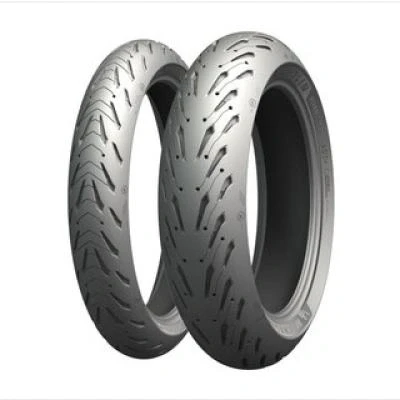 More confidence, in wet and dry conditions, even after 3000 miles.#1 for wet grip on the roadUsing the latest combined technologies of MICHELIN 2CT and 2CT+ and the latest generation of compounds and siped tread, MICHELIN Road 5 tyres offer you the best wet grip versus its main competitors without compromise on dry roads.Even after 3000 miles, experience exceptional braking in the wetEven after 3000 miles, a MICHELIN Road 5 tyre stops as short as a brand new MICHELIN Pilot Road 4 tyre thanks to the evolutionary MICHELIN XST Evo sipes.Fun to rideWith its dry grip, stability and best handling versus its main competitors, thanks to MICHELIN’s patented ACT+ casing technology, it offers even more riding pleasure.Legal mentionsAccording to internal studies at Ladoux, the Michelin centre of excellence under the supervision of an independent witness, comparing MICHELIN Road 5 tyres used for 5636 km with new and unworn MICHELIN Pilot Road 4 tyres.According to internal studies at Fontange, a Michelin test track under the supervision of an independent witness,comparing MICHELIN Road 5 tyres with METZELER Roadtec 01 , DUNLOP Road Smart 3, CONTINENTAL Road Attack 3, PIRELLI Angel GT and BRIDGESTONE T30 EVO tyres, in dimensions 120/70 ZR17 (front) and 180/55/ZR17 (rear) on Suzuki Bandit 1250" "*** External tests conducted by the MTE Test Centre invoked by Michelin, comparing MICHELIN Road 5 tyres with MICHELIN Pilot Road 4, METZELER Roadtec 01 , DUNLOP Road Smart 3, CONTINENTAL Road Attack 3, PIRELLI Angel GT and BRIDGESTONE T30 EVO tyres, in dimensions 120/70 ZR17 (front) and 180/55 ZR17 (rear) on a Kawasaki Z900 giving best dry performance globally and #1 for Handling, #2 for Stability, #2 for Dry grip.