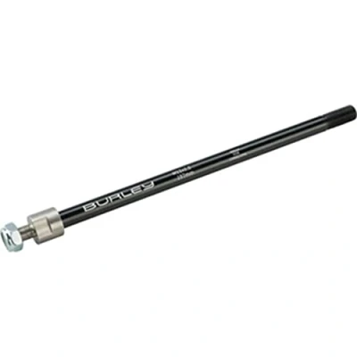 Allows bikes with 12mm thru axles to connect to Burley trailers Durable construction Quick and easy one-time installation If you are unsure of the correct thread pitch or hub length, please consult with the manufacturer of your bike, or your local bike shop before purchasing a Burley Thru Axle.