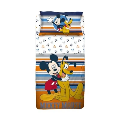 Mickey 100% Cotton Single Bed Sheet Set, Cover, Top with Flap + Fitted Pillowcase