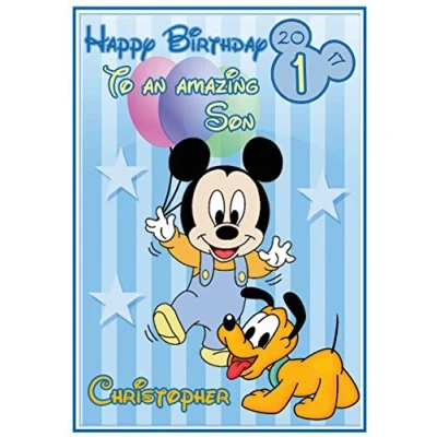 Mickey & Minnie Mouse Birthday Cards Various Designs (Mickey Pluto Striped)