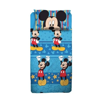 Mickey Mouse Single Bed Sheet Set, Disney Top Sheet, Fitted Pillowcase, Blue, Disney, 100% Cotton, Official Product