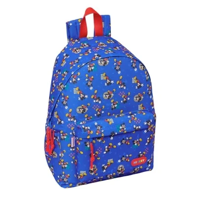 WARRANTY AND QUALITY: MICKEY MOUSE TODAY Official Laptop Backpack with 2 Years Warranty UNIQUE DESIGN: Made of a very durable polyester material and smooth zippers. Easy to wash SPACIOUS & LIGHTWEIGHT: Padded accommodation for laptops up to 14.1 inches. Interior zip pocket. Side bottle pockets Front zip pocket. Double pull on main zipper for easy opening ERGONOMICS AND COMFORT: Padded shoulder pads, back and base. Hand handle on top RESISTANCE AND DURABILITY: This product is specially designed with durability in mind, made with high strength materials to ensure that it can be used in all kinds of activities, ensuring its functionality