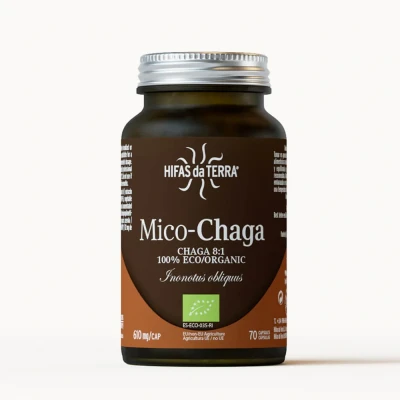 THE IMPORTANCE OF ANTIOXIDATION A natural supplement with powerful antioxidant properties derived from bioactive molecules found in Chaga mushroom. Includes 70 vegetable capsules. 70 vegetable capsules of 610 mg A vegetable-encapsulated food supplement of pure, organic Chaga extract (Inonotus obliquus), also referred to as the “Pearl of the North”. It contains vitamin C from acerola (Malpighia glabra), which protects against oxidative damage. Suitable for coeliacs and lactose intolerant people, vegetarians and vegans. Hifas da Terra products are free of heavy metals and pesticides.