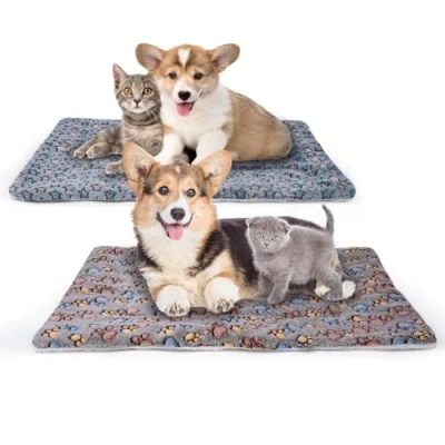 MICOOYO 2Pcs Dog Crate Bed Mattress, Fleece Pet Cushion Mat, Washable Cat Pad for Small Puppy(footprint&star,31"*23")