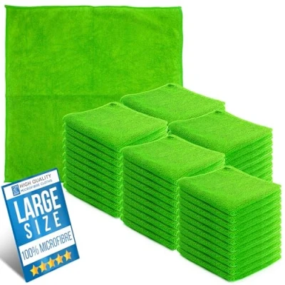 Microfiber Cleaning Cloth, Large Size 40x40cm, Super Absorbent Lint Free Microfibre Cloths for Home, Kitchen, Surface, Mirrors, Bathrooms, Motorbike, Car (50, Green)