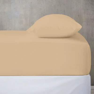 Microfiber Fitted Sheet Double Plain Bed Sheets Deep Pocket 10 inch (25cm) Shrinkage, Fade & Wrinkle Resistant Bottom Sheet, Beige to Mattress (137x193 cm) Machine Washable