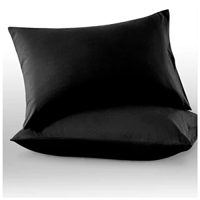 Microfiber Pillow Cases 2 Pack Plain Dyed Housewife Pillowcases Black (74x48 cm)