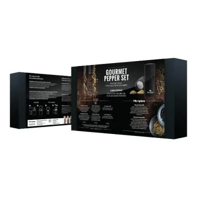 Part of the Microplane Gift Set collection, this Microplane Gourmet Pepper Gift Set comes beautifully presented in a gift box and includes: Spice Mill, Chocolate Pepper, Tellicherry Pepper, Green Pepper.The perfect gift idea for the budding chefs, home cooks and foodies in your life.