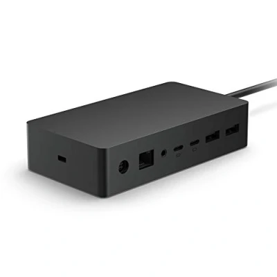199 W power supply and supports dual 4K at 60 Hz Longer Surface Connect cable (80 cm) 2 front-facing USB-C and 2 rear-facing USB-C (gen 2) 2 rear-facing USB-A 3.5 mm in/out audio jack with 1 gigabit Ethernet Kensington lock support
