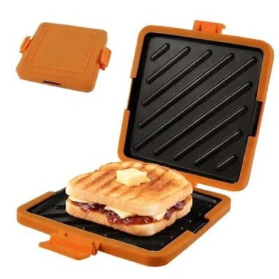 Microwave Toastie Maker Sandwich and Grill Wireless Silicone Microwaveable Cookware Extra Crispy Toasties & Panini No Soggy Results Compact Dishwasher Safe (Orange)