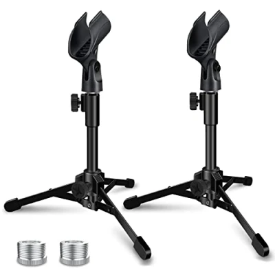 Mictop 2 Pack Desktop Mic Stand, Portable Foldable Tripod with Clip Holder, Adjustable Microphone Stand For Dynamic Like Samson Q2U Shure SM58 SM57 PGA48 PGA58 etc.