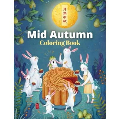 Mid Autumn Moon Festival Coloring Book For Kids: Celebrating Mooncake Chinese Boys & Girls With Over 30 Unique Designs