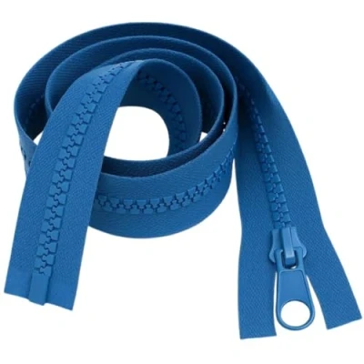 Durable open-ended zip (#5 weight) with chunky teeth, designed for tough usage. Mid Blue zip fabric surround is great for colour-coordinated repair work. Machine washable, colour-safe and tumble dry friendly. Easy-glide metal puller (non-locking) ensures hassle-free opening and closing. Perfectly suited for jackets, coats, upholstery, and heavy textile repairs; versatile for sewing and crafting. 26" length zipper, designed to provide reliable performance and stylish functionality.