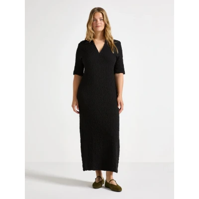 Short-sleeved midi shirt dress with an allover crinkled texture.