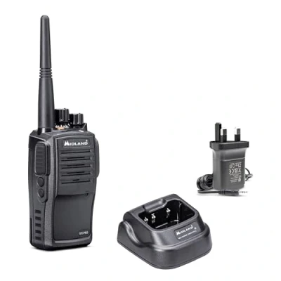 Midland G15 Pro, Two Way Radio Walkie Talkie, 32 PMR446 Channels, license free, IP67 Certified, Desktop Charger, Wall Adapter UK Plug, 1600mAh Rechargeable Li Ion Battery Pack, UKCA Certified