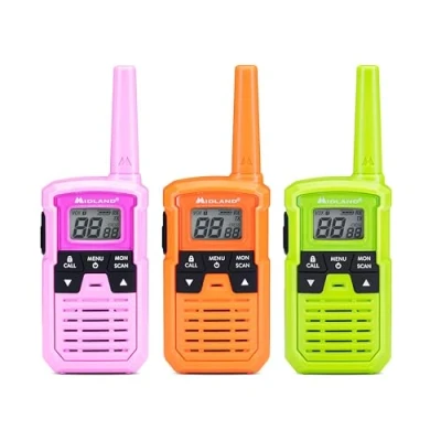 MIDLAND XT10 PRO MULTICOLOR, FAMILY FUN WITHOUT A LICENSE: PMR446 walkie-talkies for the whole family, available in green, orange, and fuchsia. Ideal for games and families communication, no license needed, up to 4 km range SAFE AND GUARANTEED PRODUCT: Compact, lightweight, non-toxic, shock-resistant, and splash-proof. Meets safety standards, with a 2-year warranty and European assistance RELIABLE TECHNICAL PERFORMANCE: 16 PMR446 channels, 38 CTCSS tones, 446.00625–446.19375 MHz, VOX, 20-hour battery life with AAA batteries, ensuring clear communication up to 4 km FULL FUNCTIONALITY AND SAFETY: Features Scan, Call, voice prompts, Bluetooth connectivity, weighing 75g, and SplashProof design, perfect for the safety and fun of families INNOVATION AND RELIABILITY SINCE 1959: Midland, a leader in radio communication, has over 65 years of experience creating innovative, high-quality products designed in Italy