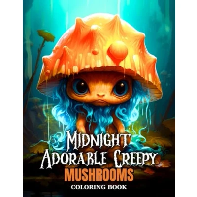 Midnight Adorable Creepy Mushrooms Coloring Book: Fantasy Pages on Black Backgrounds Featuring Mushroom Monsters for Fun and Relaxation Adults Teens