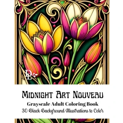 Midnight Art Nouveau Grayscale Adult Coloring Book: 30 Black Background Illustrations to Color