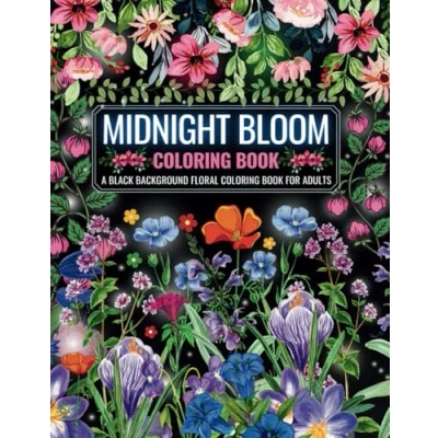 Midnight Bloom Coloring Book: A Black Background Floral Book For Adults