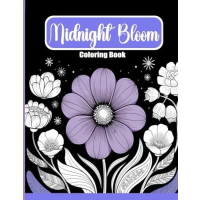 Midnight Bloom Coloring Book: Moonlit Petals 8.5"x11": 60 Black Background Floral Designs for Calming Mind and Relaxation