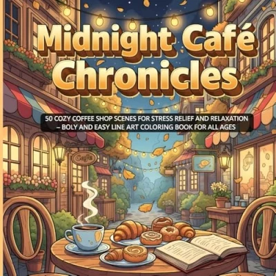 Midnight Café Chronicles: Bold & Easy Coloring Book — 50 Cozy Coffee Shop Scenes for Adults Teens Relaxation and Stress Relief