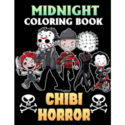 Midnight Chibi Horror Coloring Book: Scary And Creepy Halloween With Killer Designs On Black Background Colouring Pages For Adult Kids To Have Fun & Unwind