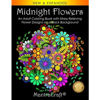 Midnight Flowers: An Adult Coloring Book with Stress Relieving Flower Designs on a Black Background (Coloring Books for Adults)