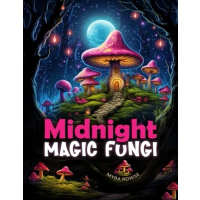 Midnight Magic Fungi: A Black Background Mushroom Coloring Book featuring Whimsical Fairy Houses in Relaxing Fantasy Woodland Landscapes