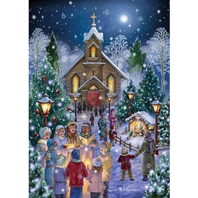 Midnight Mass Boxed Christmas Cards 15 & 16 Foil Lined Envelopes