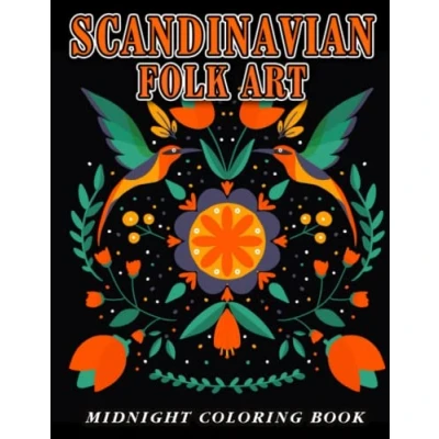 Midnight Scandinavian Folk Art Coloring Book: Beautiful Pages On Dark Background For Adults To Unleash Creativity