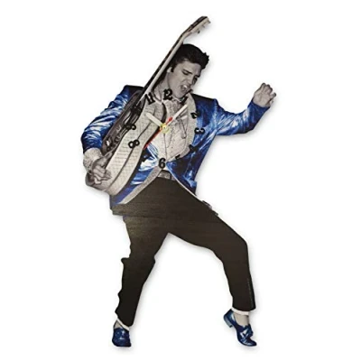 A CLOCK THAT SWINGS LIKE NO OTHER: Features Elvis Presley in his iconic blue suede shoes, with swinging legs that dance along with the time, adding a lively touch to any room. EASY TO DISPLAY: The 8.5-inch is equipped with a handy hanging hook on the back, making it a breeze to set up and enjoy. (requires two AA batteries - not included)) OFFICIALLY LICENSED: This collectible is officially licensed by Elvis Presley Enterprises, making it a true treasure for any Elvis aficionado. A UNIQUE GIFT: The perfect gift for any Elvis fan, this clock adds a playful and nostalgic vibe to their collection. FROM MIDSOUTH PRODUCTS: Dedicated to creating fun and unique items that bring back cherished memories, ensuring every piece is a delightful addition to your collection.