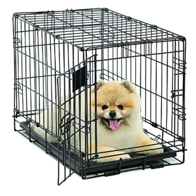 22L x 13W x 16H Inches Ideal for pets up to 10 pounds Exceptionally versatile single-door dog crate Durable Satin Black E-Coat Finish with Easy to Clean ABS plastic pan included Easy setup and folddown to portable size. Divider panel included, allowing you to adjust your puppy's living area as it grows.