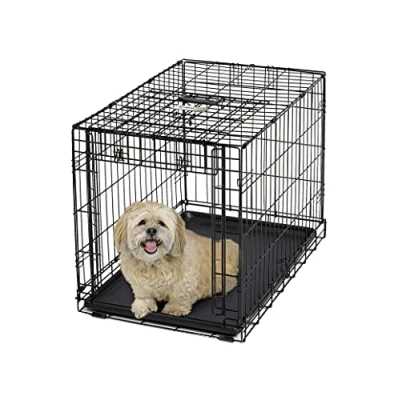 MidWest Homes for Pets Ovation Single Door Medium Folding Metal 76.2cm (30 Inch) Long Dog Crate with Divider Panel, Floor Protecting Feet, Leak Proof Pan, Breed, Black, Model 1930