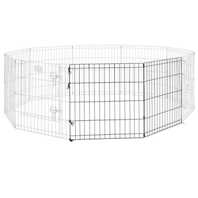 Save $$$ ; Want additional space but don’t want to purchase another playpen? Each kit provides an additional four square feet of living area to your exisiting dog pen and fits most brands UNIVERSAL pet playpen 2-panel extension kit; Each panel measures 24W x 24H inches for total of 48W x 24H inches or 4 sq ft of NEW living area to your dog pen Fits ALL "24-Inch" standard wire pet playpens and dog pens ; Panels easily attach to existing playpen w/ included hardware (4 thumb-snaps and 2 ground stakes) Perfect kit for adding play space to your existing dog pen or increasing "fencing" to close off a room or outdoor area Please note you are purchasing a two-panel extension kit only, this is not an entire dog exercise pen