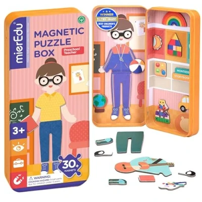 The mierEdu Travel Magnetic Box-Preschool Teacher is a portable educational set featuring magnetic pieces designed to engage preschoolers in imaginative play and learning on the go. Perfect for travel, it helps develop cognitive and creative skills in young children.