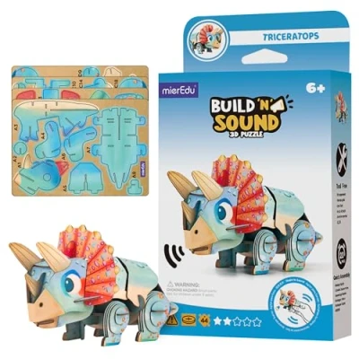 Interactive dinosaur puzzle - Discover the world of dinosaurs with this 3D puzzle children from 6 The Triceratops comes to life with realistic sounds - an exciting puzzle experience for little researchers. With real sound effect - This 3D puzzle for children is equipped with a sound module that roars when assembled. Perfect for little dinosaur fans and puzzle lovers Playfully learn & strengthen motor skills - Promotes patience, fine motor skills and logical thinking. Suitable as a 3D puzzle from 6 years to 10 years, ideal for children who love puzzles. High-quality materials & easy to build - Made from FSC certified paper, with robust connectors - no glue! This 3D puzzle for children aged 8 and up impresses with detail and stability. Great gift for girls and boys - whether for a birthday or as a creative leisure activity - the three D puzzle children inspires little tinkers and provides hours of puzzle fun!, Manufacturer: mierEdu