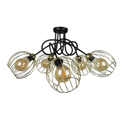 Mig Multi Arm Semi Flush Ceiling Light Black, Gold, 70cm, 5x E27