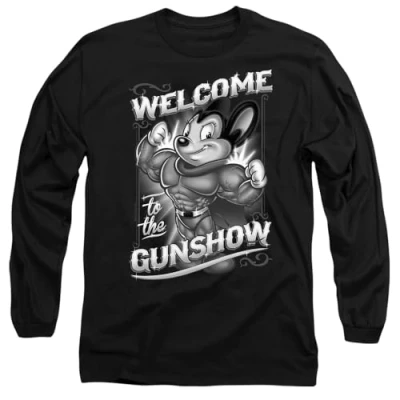 Mighty Mouse Gunshow Mens Long Sleeve T Shirt, Black, Large
