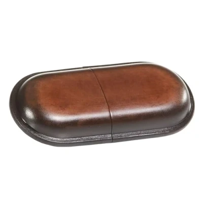 The small brown leather case for glasses and visual aids of all types from MIKA is made from the finest genuine leather / saddle leather and convinces with its resistance, strong colour and purity The glasses storage is equipped with a push button for opening and closing and a decorative notch, and is equipped with the compact external dimensions of approx. 15 x 6 x 3 cm for a constant everyday companion The precise compartment cut-out and tear-resistant seams as well as the durable material of the glasses box shows the high-quality workmanship. A striking leather glasses case for men and women. The glasses box is slim and comparable with a hard case case, suitable for reading glasses, sunglasses, foresight, short-vision and focal vision glasses, as well as sports glasses and children's glasses. MIKA glasses case for men and women in the highest quality leather outer dimensions: approx. 15 x 6 x 3 cm, weight: approx. 80 g, material: saddle leather, colour: brown, item no. 28071002, EAN: 4260308921308.